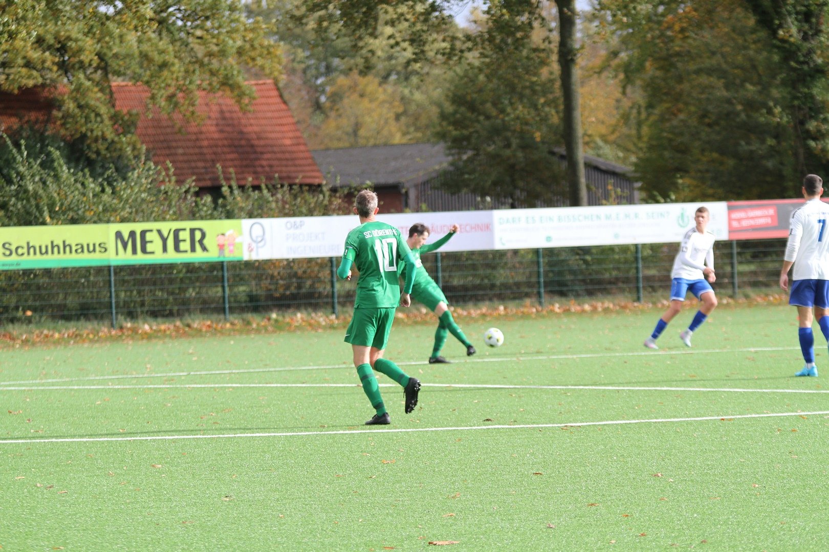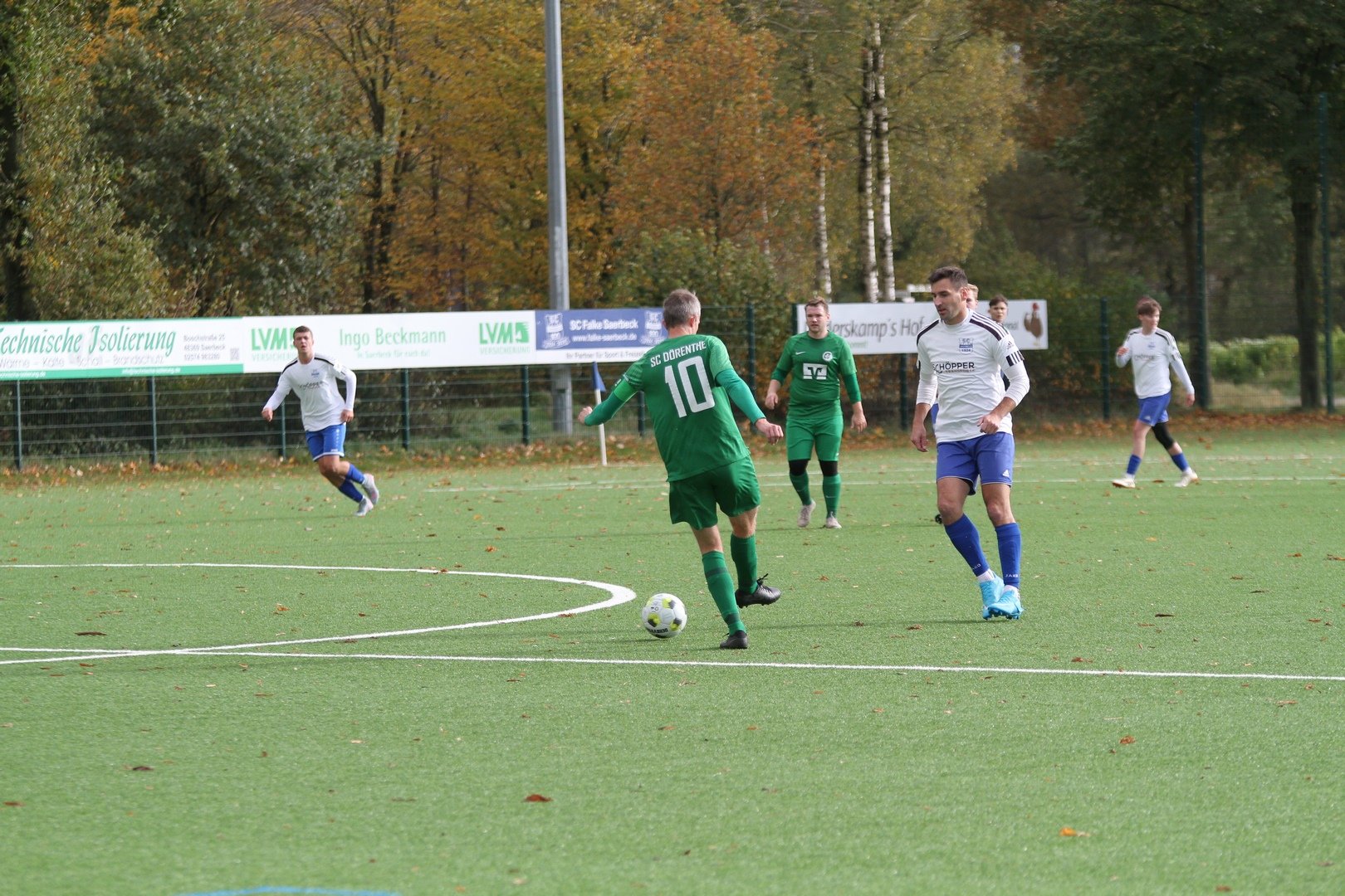 Unsere Erste Mannschaft trennte sich 3:3 von Falke Saerbeck 2 und zeigte eine moralische Spitzenleistung, nachdem der Gastgeber zur Pause mit 3:0 führte. Starker Wind und Schauer bereiteten allen keinen schönen Spieltag. Unsere Erste Mannschaft hatte an diesem Sonntag in der ersten Halbzeit trotz mehr Ballbesitz viele Probleme. Nach nicht ganz 4 Minuten kam ein Freistoß durch den Strafraum gesegelt, ein DSC Akteur schlägt ein Luftloch und Saerbeck sagt danke zum 1:0. Das 2:0 war auch nach einem Freistoß. Die DSC Defensive ist nicht aggressiv genug und Falke erhöht auf 2:0. Auch dem 3:0 leistete der DSC gehörig Hilfe, indem ein Rückpass direkt zu einem Falke-Angreifer gespielt wurde, der dann auf 3:0 stellte. In der Halbzeit fanden die Trainer die richtigen Worte, denn ab der ersten Minute hatte der DSC nun das Spiel besser im Griff und setzte die Heimelf überall unter Druck. In der 49. Minute ging dann Thorben Welp allein auf den Keeper zu und verkürzte auf 3:1. Es folgten 45 Minuten, in denen unsere Erste Mannschaft das Spiel machten und Saerbeck 2 in allen Situationen unter Druck setzte. Es dauerte bis zur 81. Minute, ehe Jan Nicklas Bahn nach einem Solo das 3:2 erzielte. Unsere Erste Mannschaft erhöhte weiter den Druck und kam in der 90. Minute hochverdient durch Ole Biekötter zum 3:3. In der Schlussminute nach einem Eckstoß ergab sich die große Chance auf den Siegtreffer, den aber Torwart hielt.