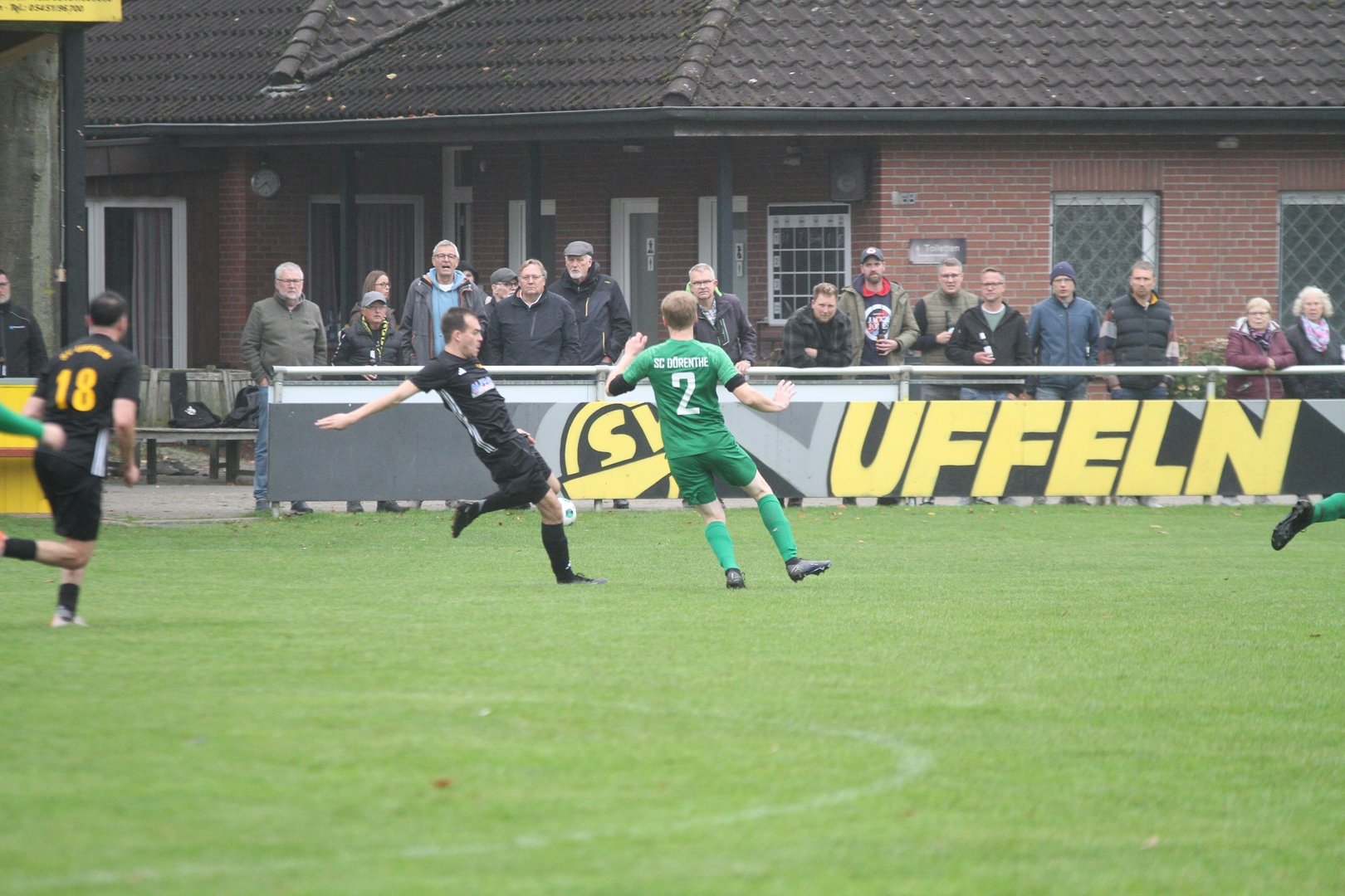 Wie in so einigen Spielen startete unsere Erste Mannschaft mit Schwung und bereitete dem Gastgeber große Probleme. In der 6. Minute nutzte Georg Michel einen Fehler in der Hintermannschaft und besorgte die frühe 1:0 Führung für den DSC. Spielerisch war es kein gutes Spiel. Weder vom Gastgeber noch von unserer Mannschaft. Es war ein kampfbetontes Spiel. Die erste Halbzeit gehörte dabei dem SC Dörenthe der die heimische Abwehr oft zu Fehlern zwang. Im Gegenzug ließ die DSC Abwehr wenig zu. Ein abgefälschter Schuss sorgte dafür, dass Torhüter Markus Gripskamp in die falsche Ecke sprang und der Ausgleich fiel. Nur 6 Minuten später hatte der SC Dörenthe die passende Antwort und erneut Georg Michel ging über Außen durch, schoss einen Gegenspieler an beim Versuch den Ball querzulegen und das Leder prallte ins Tor der Heimmannschaft. Ein Eigentor, provoziert von Georg. In der zweiten Halbzeit versuchte Uffeln offensiver zu spielen und es entwickelte sich ein hektisches Spiel. Auf beiden Seiten waren Abwehrreihen gefordert. Aus dem Spiel heraus gelang es keiner Mannschaft, eine Torchance zu generieren. Distanzschüsse verfehlten allesamt deutlich. Ein unglückliches Handspiel brachte dem Gastgeber einen Elfmeter ein. Der Ball kam aus 20 Metern Höhe runter und sprang einem DSC Verteidiger an den Arm. Das 2:2 war die Folge. Beide Mannschaften spielten mit offenem Visier, aber das Glück war auf Seiten von Uffeln. Leider entschied ein Abseitstor. Ein Angreifer stand tief im Abseits und war beim entscheidenden Pass bestimmt passiv, griff dann aber ein und war in dem Moment klar aktiv im Abseits. So sahen es schlussendlich beide Mannschaften und auch die Zuschauer. In der Schlussminute nach einem Eckball trudelte der Ball noch auf der Linie des Uffeln Tores, aber ein Verteidiger klärte den drohenden Ausgleich. Das Spiel war spannend und bot Zweikampf und Tempo. Es war eine Partie auf Augenhöhe, in dem ein Remis gerecht gewesen wäre.