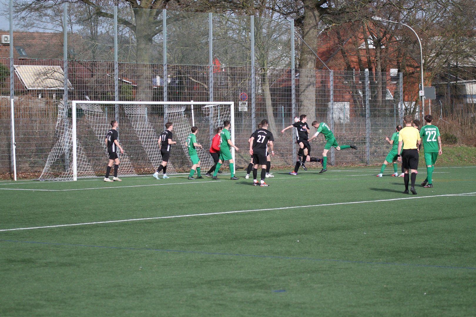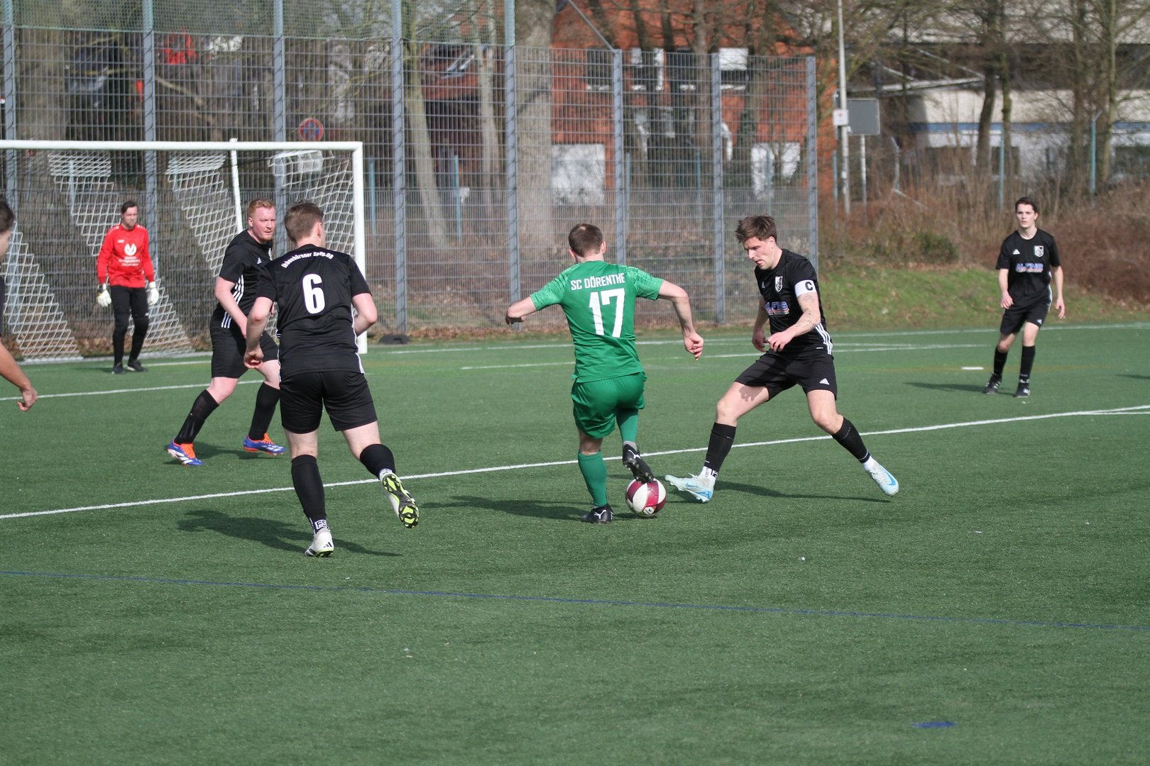 Eine bittere Niederlage musste unsere Erste am Sonntag bei der ISV hinnehmen. Es war ein sehr gut anzuschauendes Fußballspiel, in den beide Mannschaften spielerische Mittel nutzten und kaum lange Bälle schlugen. Der DSC zeigte hierbei bessere Anlagen und ließ den Gastgeber nicht zu Torchancen kommen. Im Gegenzug ergaben sich gute Gelegenheiten den Führungstreffer zu erzielen. Verschieben und Pressing klappten sehr gut und ISV 3 wurde zu Fehlern gezwungen. In der 38. Minute nutzte Ole Biekötter der ein starkes Spiel zeigte, einen Fehler und ging allein auf den Keeper zu. Trocken legte er die Kugel zur Führung in die Maschen. Zu diesem Zeitpunkt hochverdient. Auch in der Folge hätte das 0:2 fallen können. Eine eigentlich nicht so gefährliche Situation 20 Meter vor dem Tor sorgte dann für eine rote Karte gegen den DSC. Zwei Dörenther Spieler behinderten sich gegenseitig und ein ISV Spieler mischte mit. Dieser kam dann zu fall und der Schiedsrichter entschied auf Notbremse. Auch in Unterzahl ab der 41. Minute war zunächst der SC Dörenthe die spielerisch bessere Mannschaft. Aber es fehlte oft offensiv eine Anspielstation. Aus dem Spiel heraus ließ der DSC nichts zu. Ein Freistoß auf Höhe der Eckfahne sorgte dann für den Ausgleich. 3 Spieler stiegen hoch und plötzlich lag der Ball im Tor. Bis zur 75. Minute war kein Unterschied auf dem Feld zu sehen. Der SC Dörenthe hatte 2 gute Chancen erneut die Führung zu erzielen nach schnellen Angriffen. Leider blieb der Torerfolg aus. Ab der 75. Minute schwanden die Kräfte da einige Spieler unter der Woche noch krank waren. Trotzdem gelang der ISV es nicht zum Abschluss zu kommen aus dem Spiel heraus. Für das 2:1 in der 86. Minute sorgte erneut ein Standard. Nach einer Ecke zog ein ISV Akteur aus der zweiten Reihe ab und traf ins lange flache Eck. Die letzten 8 Minute versuchte der DSC noch ein Remis zu erzwingen aber kam nicht mehr zu Gelegenheiten. Die Unterzahl brachte letztlich den Unterschied.