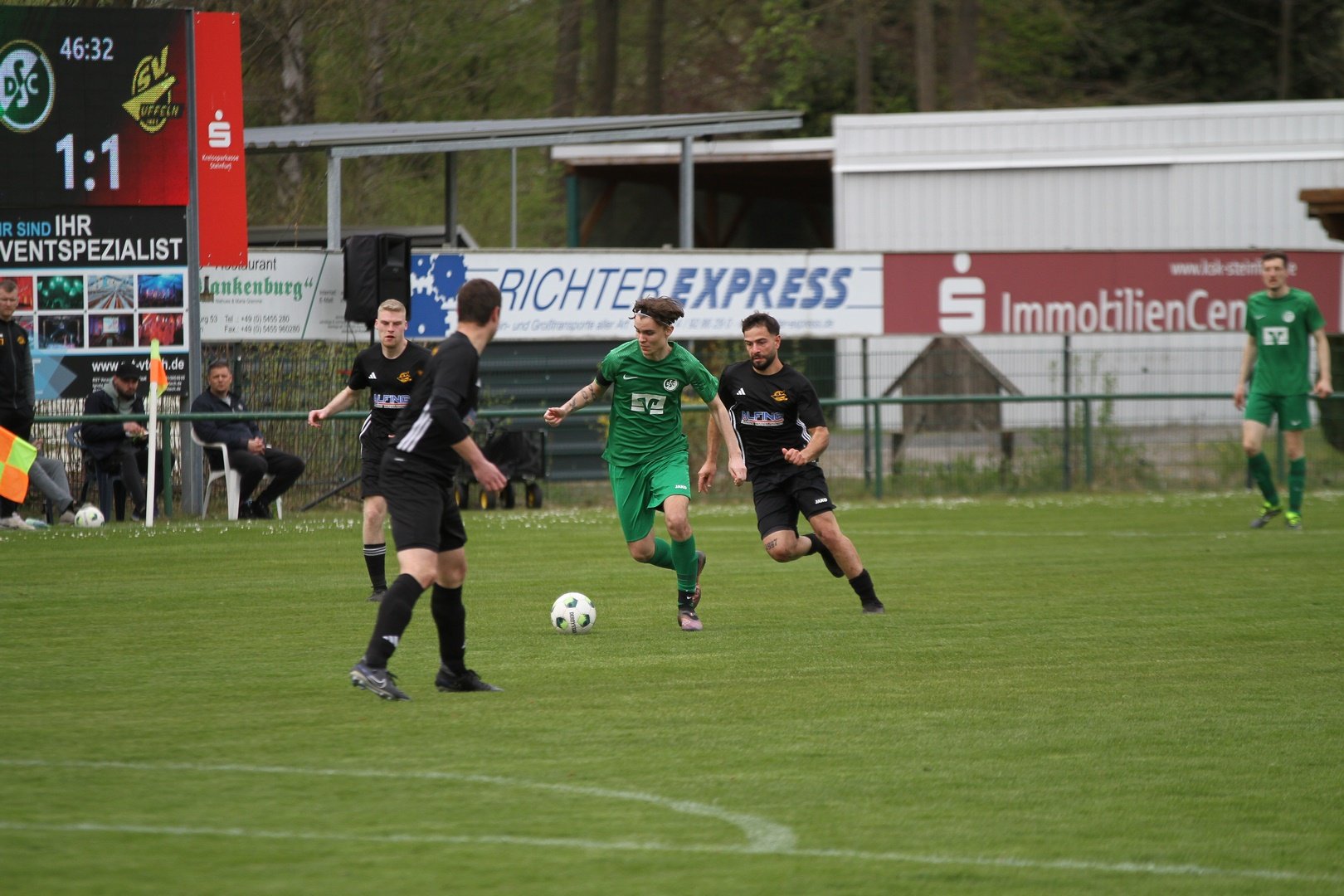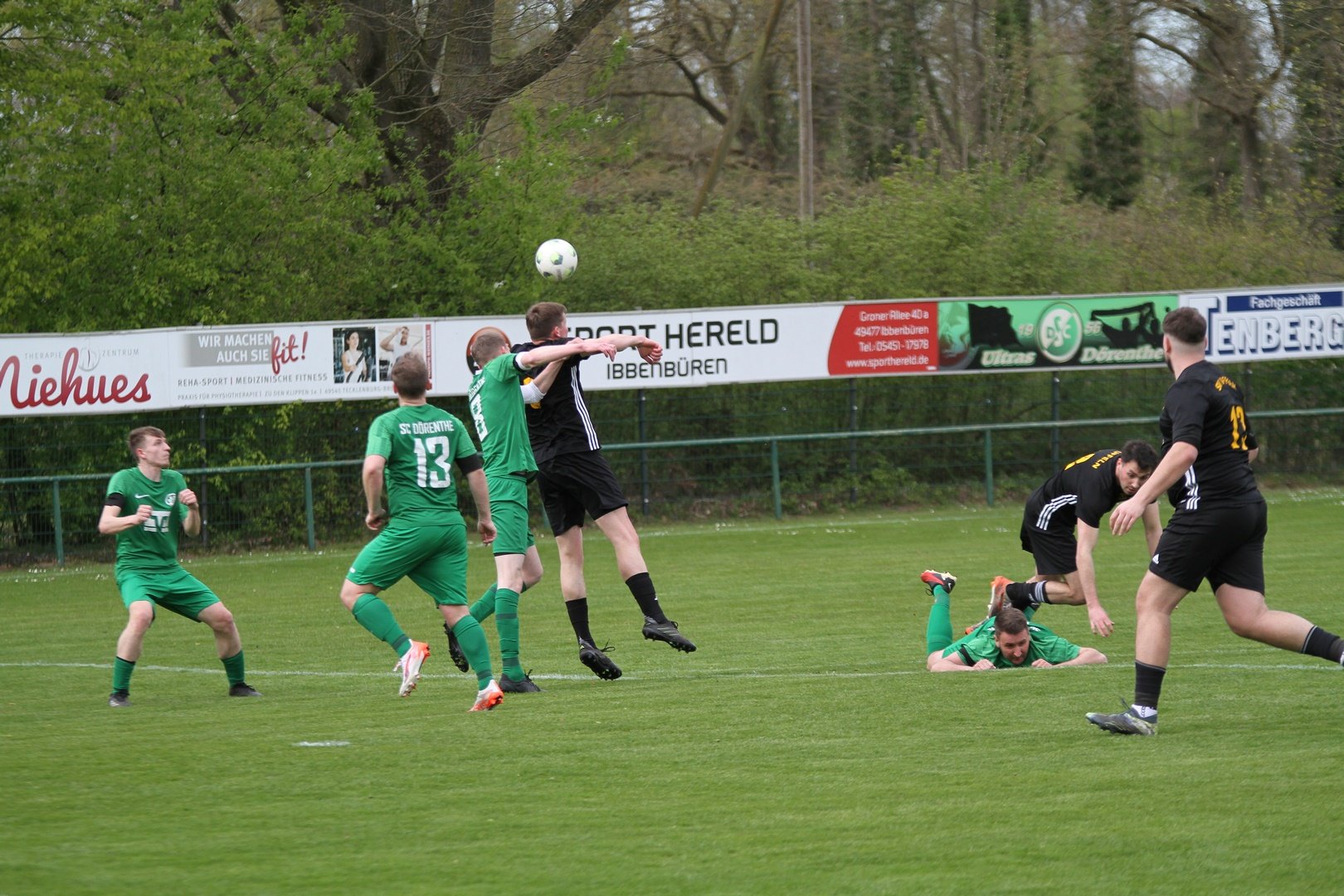 Und das mit einem 20 Meter Hammer in den Knick. Ein rassiges, wenn auch eher kampfbetontes Spiel sahen die Zuschauer im Hafenstadion am Sonntag. Die Anfangsphase gehörte erst einmal dem DSC. Der Gast wurde früh angegriffen und hatte damit so seine Probleme. Nach 10 Minuten rettete der SVU Keeper nach Kopfball von Georg Michel. In der 18. Minute war dann Ole Biekötter zur Stelle. Er bekam den Ball in den Lauf und schob am Keeper vorbei zur Führung ein. Der Gast war vor allem bei Standards gefährlich, aus dem Spiel heraus konnte der SV Uffeln die DSC Defensive nur sehr selten überwinden. In der 40. Minute sorgte dann ein Eckball für den Ausgleich. Per Kopf glich der Gast sehenswert aus. In der zweiten Halbzeit spielten beide Mannschaften vermehrt mit langen Bällen und es ergaben sich vor allem für den SC Dörenthe gute Chancen die liegen gelassen wurden. Ole Biekötter setzte dann in der 76. Minute eine Direktabnahme aus 20 Metern in den Giebel. Ein absolutes Tor des Monats. Georg Michel hatte Pech, indem er nur den Pfosten traf. Mit dem 3:1 wäre die Partie entschieden gewesen. So blieb es bis zum Schluss in der 99. Minute spannend denn der Gast warf alles nach vorne. Torgefahr entstand aber nicht mehr. Die Defensive machte einen guten Job. Ein verdienter Sieg nach einem intensiven Spiel. Zur Wahrheit gehört aber auch, dass das Spiel jederzeit auch hätte kippen können denn Uffeln war nicht schlechter.