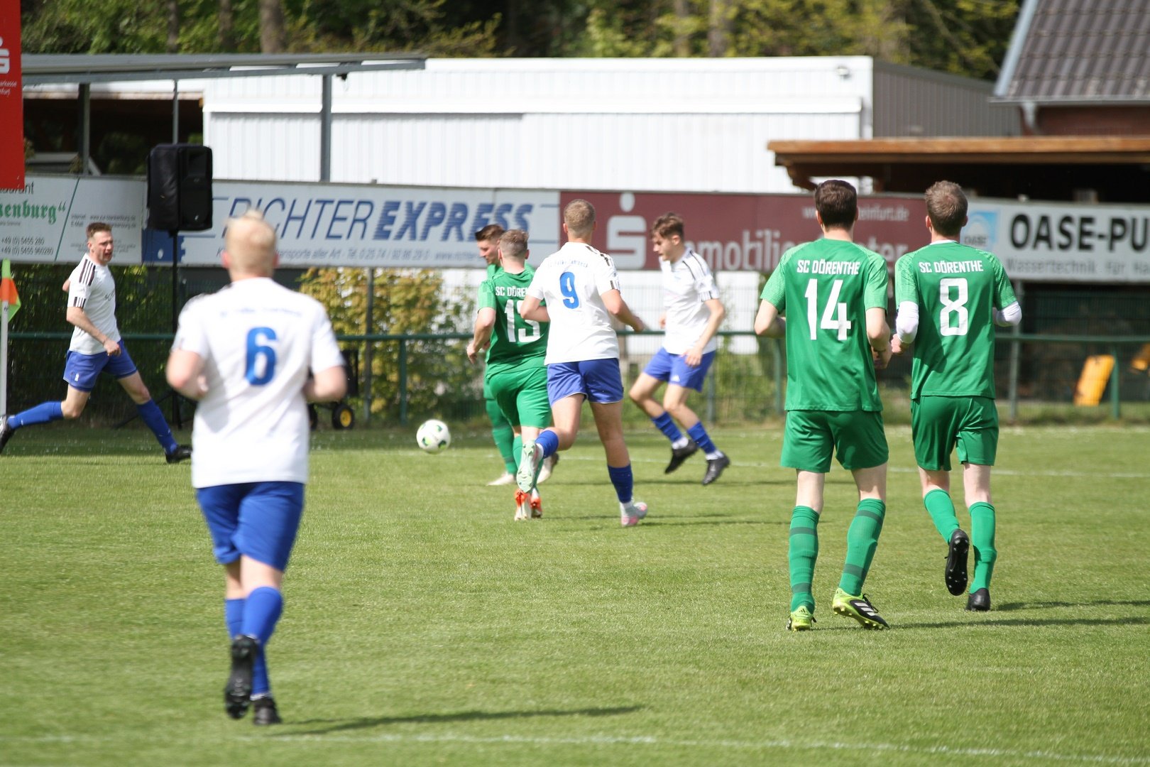 Und das mit einem 20 Meter Hammer in den Knick. Ein rassiges, wenn auch eher kampfbetontes Spiel sahen die Zuschauer im Hafenstadion am Sonntag. Die Anfangsphase gehörte erst einmal dem DSC. Der Gast wurde früh angegriffen und hatte damit so seine Probleme. Nach 10 Minuten rettete der SVU Keeper nach Kopfball von Georg Michel. In der 18. Minute war dann Ole Biekötter zur Stelle. Er bekam den Ball in den Lauf und schob am Keeper vorbei zur Führung ein. Der Gast war vor allem bei Standards gefährlich, aus dem Spiel heraus konnte der SV Uffeln die DSC Defensive nur sehr selten überwinden. In der 40. Minute sorgte dann ein Eckball für den Ausgleich. Per Kopf glich der Gast sehenswert aus. In der zweiten Halbzeit spielten beide Mannschaften vermehrt mit langen Bällen und es ergaben sich vor allem für den SC Dörenthe gute Chancen die liegen gelassen wurden. Ole Biekötter setzte dann in der 76. Minute eine Direktabnahme aus 20 Metern in den Giebel. Ein absolutes Tor des Monats. Georg Michel hatte Pech, indem er nur den Pfosten traf. Mit dem 3:1 wäre die Partie entschieden gewesen. So blieb es bis zum Schluss in der 99. Minute spannend denn der Gast warf alles nach vorne. Torgefahr entstand aber nicht mehr. Die Defensive machte einen guten Job. Ein verdienter Sieg nach einem intensiven Spiel. Zur Wahrheit gehört aber auch, dass das Spiel jederzeit auch hätte kippen können denn Uffeln war nicht schlechter.