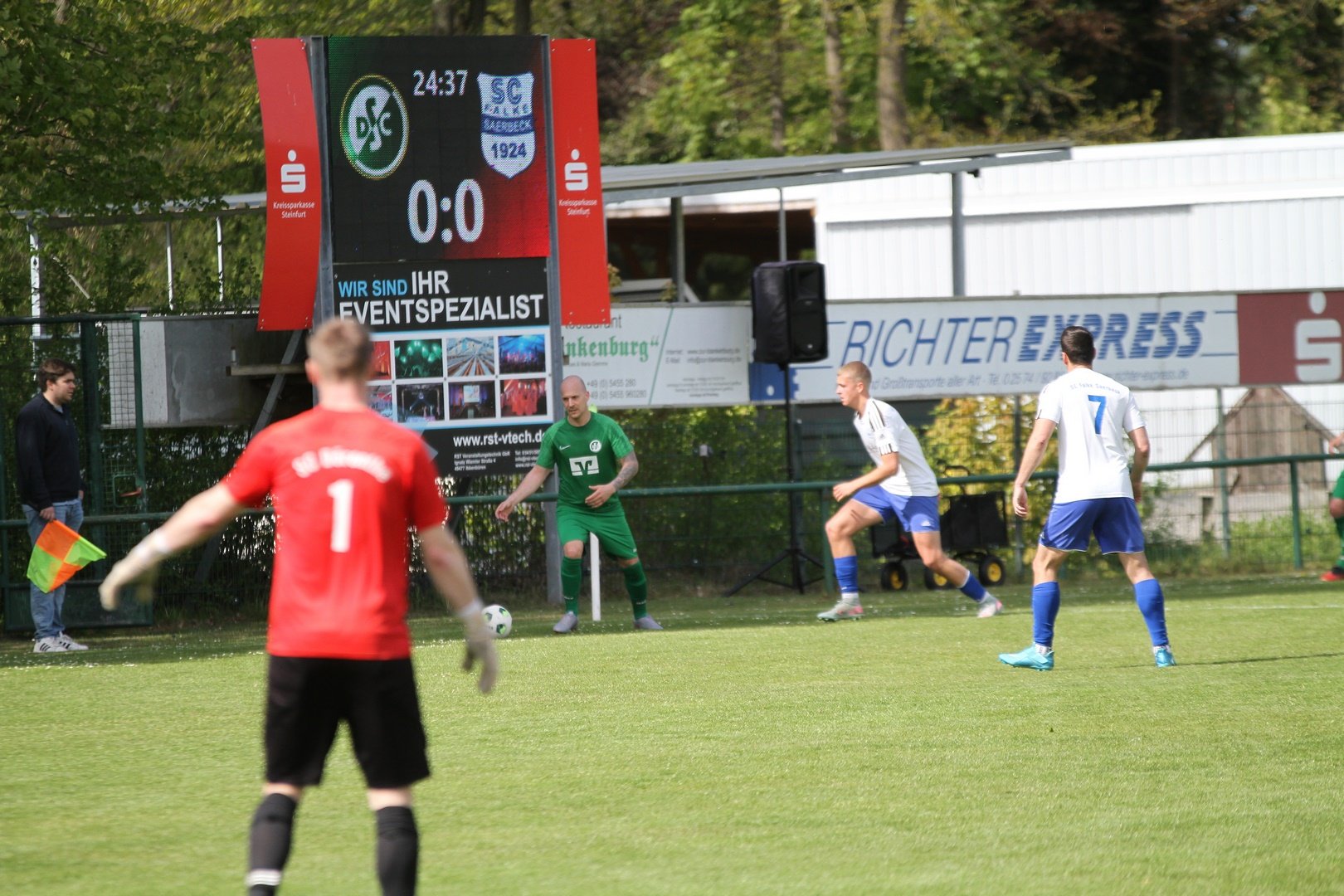 So ganz so viel gibt es zu dem Spiel in Esch tatsächlich nicht zu sagen. Es war ein eher ereignisarmes Spiel, in dem beide Mannschaften deutliche Probleme mit dem Untergrund hatten. Nach dem Führungstreffer zum 0:1 durch Steffen Klaas hatte unsere erste Pech beim Ausgleich. Ein DSC Spieler rutschte aus und konnte den Gegenspieler nicht stellen. Der Schuss wird abgefälscht und Torwart Markus Gripskamp war so in der falschen Ecke. Chancen das Spiel zu gewinnen gab es aber brachten leider keinen Erfolg.