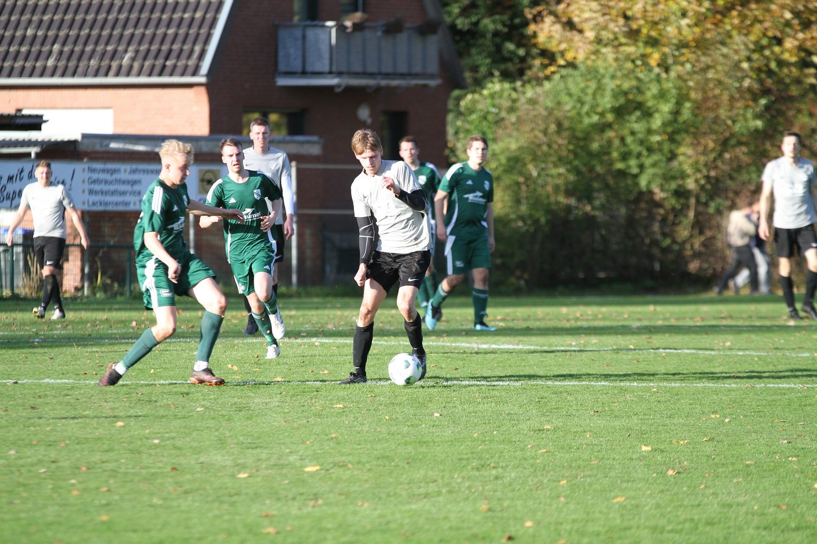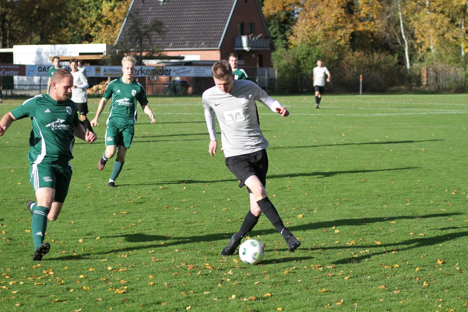 Unsere Erste Mannschaft trennte sich 3:3 von Falke Saerbeck 2 und zeigte eine moralische Spitzenleistung, nachdem der Gastgeber zur Pause mit 3:0 führte. Starker Wind und Schauer bereiteten allen keinen schönen Spieltag. Unsere Erste Mannschaft hatte an diesem Sonntag in der ersten Halbzeit trotz mehr Ballbesitz viele Probleme. Nach nicht ganz 4 Minuten kam ein Freistoß durch den Strafraum gesegelt, ein DSC Akteur schlägt ein Luftloch und Saerbeck sagt danke zum 1:0. Das 2:0 war auch nach einem Freistoß. Die DSC Defensive ist nicht aggressiv genug und Falke erhöht auf 2:0. Auch dem 3:0 leistete der DSC gehörig Hilfe, indem ein Rückpass direkt zu einem Falke-Angreifer gespielt wurde, der dann auf 3:0 stellte. In der Halbzeit fanden die Trainer die richtigen Worte, denn ab der ersten Minute hatte der DSC nun das Spiel besser im Griff und setzte die Heimelf überall unter Druck. In der 49. Minute ging dann Thorben Welp allein auf den Keeper zu und verkürzte auf 3:1. Es folgten 45 Minuten, in denen unsere Erste Mannschaft das Spiel machten und Saerbeck 2 in allen Situationen unter Druck setzte. Es dauerte bis zur 81. Minute, ehe Jan Nicklas Bahn nach einem Solo das 3:2 erzielte. Unsere Erste Mannschaft erhöhte weiter den Druck und kam in der 90. Minute hochverdient durch Ole Biekötter zum 3:3. In der Schlussminute nach einem Eckstoß ergab sich die große Chance auf den Siegtreffer, den aber Torwart hielt.
