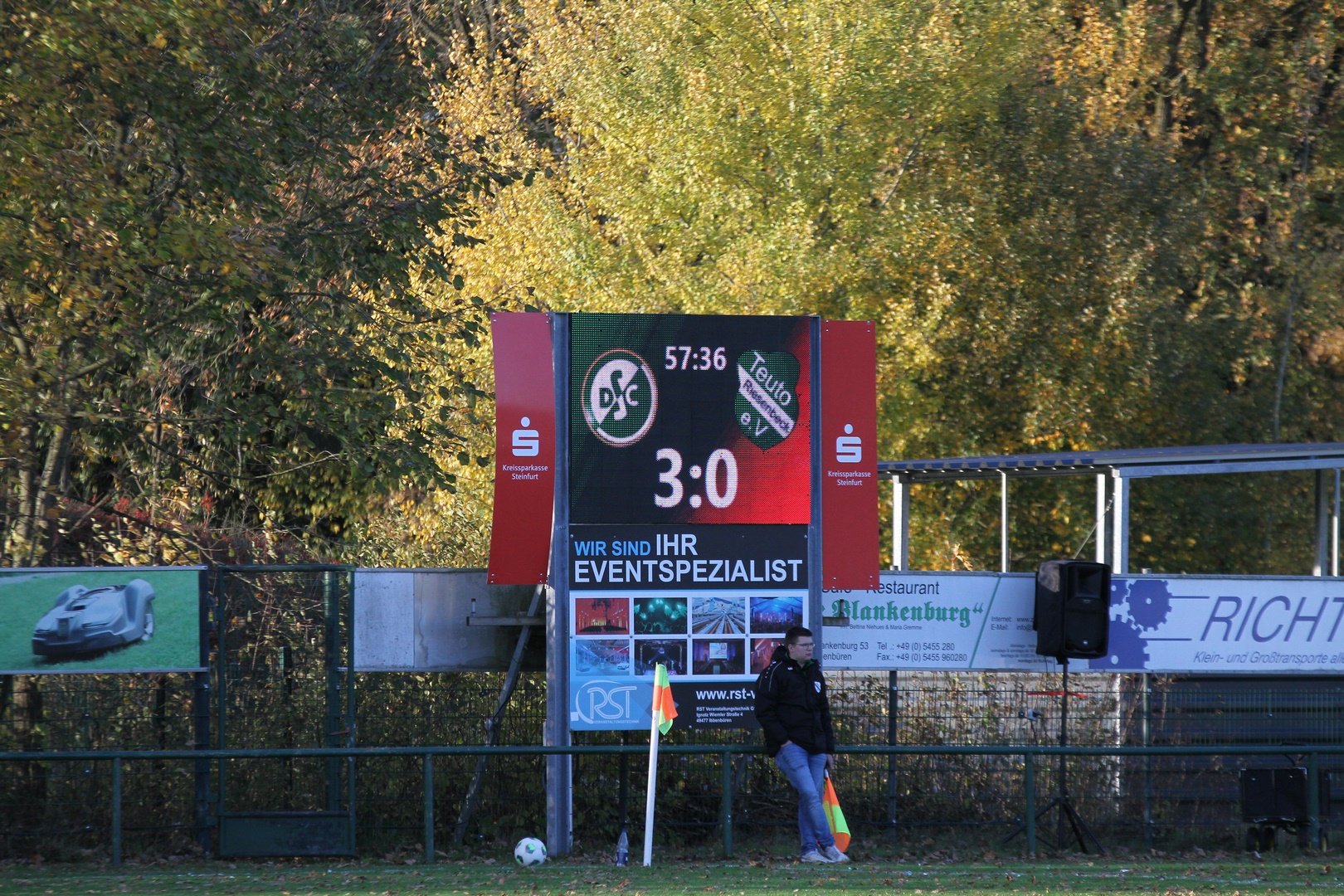 Von der ersten bis zur letzten Minute war unsere Erste Mannschaft im Spiel und setzte sich verdient gegen den Favoriten aus Riesenbeck durch. Man of the Match war Georg Michel der an seinem Geburtstag einen lupenreinen Hattrick hinlegte. Sein erstes Tor machte Georg nach starker Vorarbeit von Ole Biekötter in der 28. Minute. Direkt nach Anpfiff eroberte Florian Rahe den Ball, passte auf Georg Michel, der aus gut 16 Metern abzog und der abgefälschte Ball hinter dem Teuto Keeper in den Kasten flog. Das 3:0 in der 53. Minute leitete Benedikt Bußmann ein, der gleich 4 Gegenspieler überwand und den Ball scharf vors Tor brachte. Georg Michel lief rein und drosch das Leder in die Maschen. Der Gast war spielerisch nicht in der Lage sich in Szene zu setzen, aber Teuto 2 gab nicht auf. Nach einem Angriff über rechts konnte unsere Erste den Ball nicht aus der Gefahrenzone bringen und Teuto 2 verkürzte in der 62. Minute. In der Folge war der Gast präsenter auf dem Feld, aber tat sich schwer gegen die DSC Defensive zu Chancen zu kommen. Im Gegenzug ergaben sich gute Kontergelegenheiten. In der 88. Minute nutzte Joker Finn Bündgen einen zum 4:1 Endstand. Finn zog mit Tempo in den Strafraum und setzte aus spitzem Winkel das Leder in die Maschen.