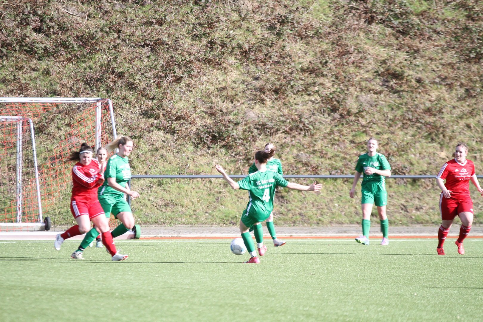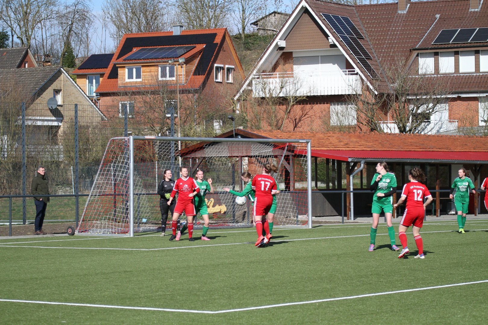 Die Rollen waren klar verteilt aber vorab war klar, dass es keine eindeutige Sacher werden wird. Unsere Damen SG hat sich verstärkt und stark verjüngt. Das war vor allem läuferisch in der Partie zu spüren. Zunächst stand unsere Damen SG in den ersten Minuten etwas passiver und es sah ein wenig danach aus als wenn der Respekt ein wenig Hemmungen auslöste. Dieses gab sich aber nach gut 20 Minuten und unsere Damen wurden spielfreudiger und mutiger. Während dem Gastgeber die Anfangsphase gehörte wurde unsere Mannschaft ab der 20. Minute besser und machte dem BSV Probleme. Nach 35 Minuten sorgte dann ein schöner Schuss aus der zweiten Reihe durch Katharina Engeler für die Führung der SG Dörenthe/Saerbeck. Darauf hatte der Gastgeber zunächst auch keine Antwort. Brochterbeck tat sich sehr schwer gegen die laufstarken jungen Spielerinnen unserer SG. Auch spielerisch zeigte unsere SG gutes Passspiel. Der letzte Pass wollte aber nicht ankommen. Defensiv zeigten beide Mannschaften eine starke Leistung. Spielerisch in der Zentralen war unsere SG aber etwas besser. Auch in der zweiten Halbzeit war die SG Dörenthe/Saerbeck dem 2:0 näher als der BSV dem Ausgleich. Dem Gastgeber blieb nichts anderes übrig als komplett aufzulösen, um noch einen Punkt mitzunehmen. Aus dem Spiel heraus brachte der Gastgeber aber nichts auf das Tor unserer Damen. Bei Eckstößen wurde es aber immer brenzlich. Nach einer umstrittenen Freistoßentscheidung führte Brochterbeck schnell aus und unsere Damen verpassten die Situation. Da musste auf der Linie gerettet werden. Unsere Damen ließen die eine oder andere Kontergelegenheit aus. Für den Ausgleich in der 87. Minute sorgte ein schnell ausgeführter Eckstoß, den Anja Korte auf den Kasten brachte. Unsere Torfrau Elisabeth Wermers wehrte den Ball an die Latte ab, dieser prallte aber zurück an den Kopf und ins Tor. Kurios und glücklich aber letztlich der Lohn der kurzen Drangphase des Gastgebers der Risiko gegangen war. Unterm Strich ein glücklicher Punkt für Brochterbeck was auch seitens des BSV so gesehen wurde und ein BigPoint für unsere Damen. Unsere Damen SG hat gezeigt das zukünftig mit Ihr zu rechen ist. Ein tolles faires Spiel bei schönem Wetter.