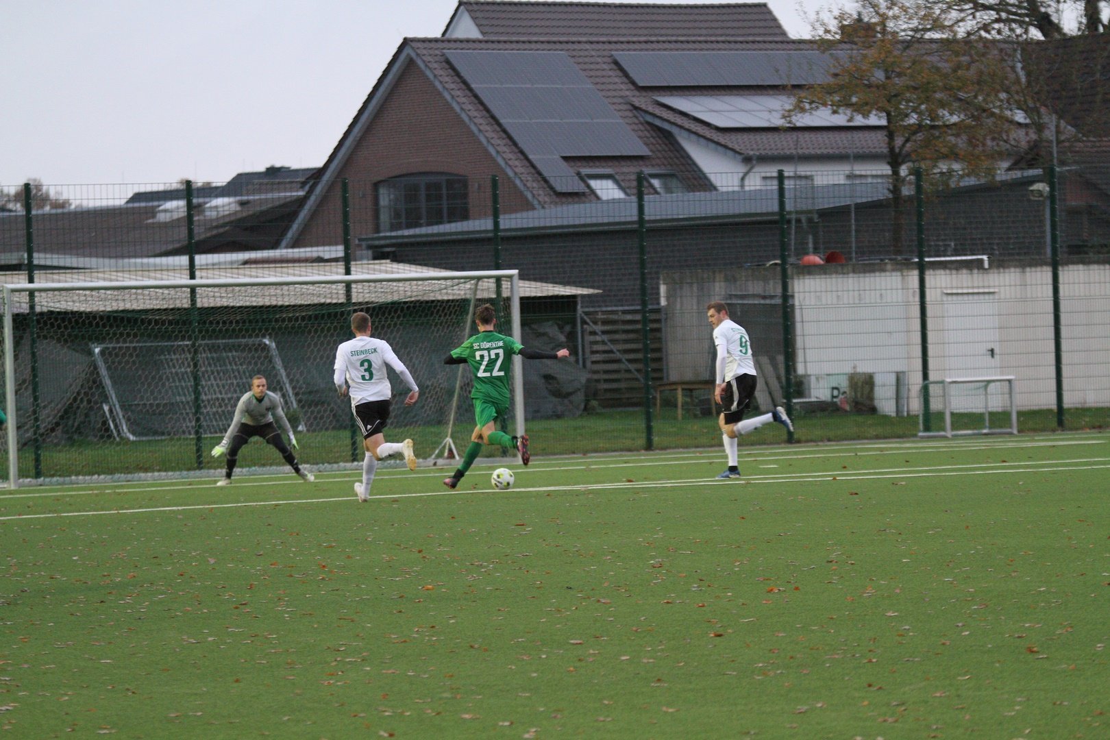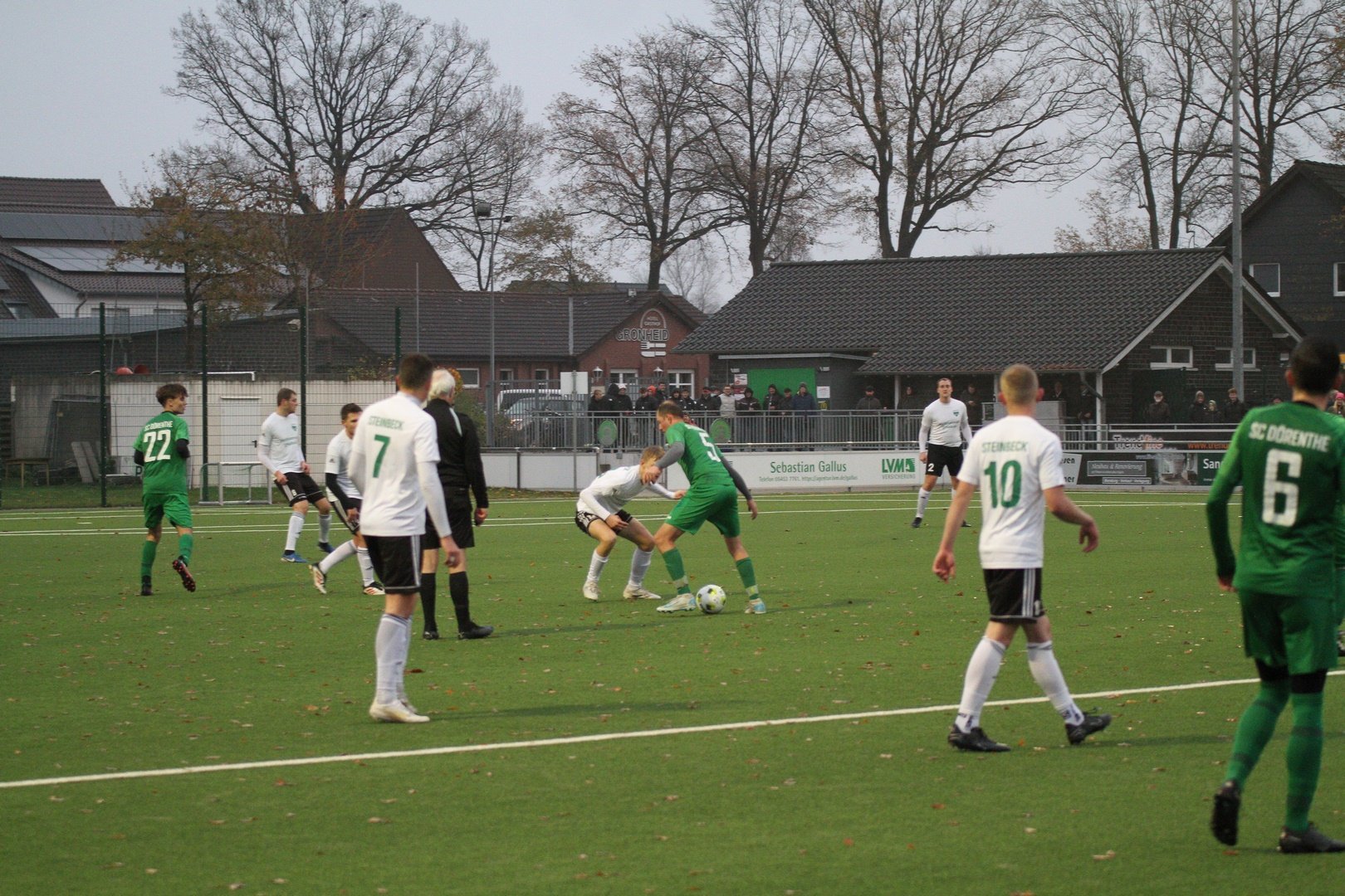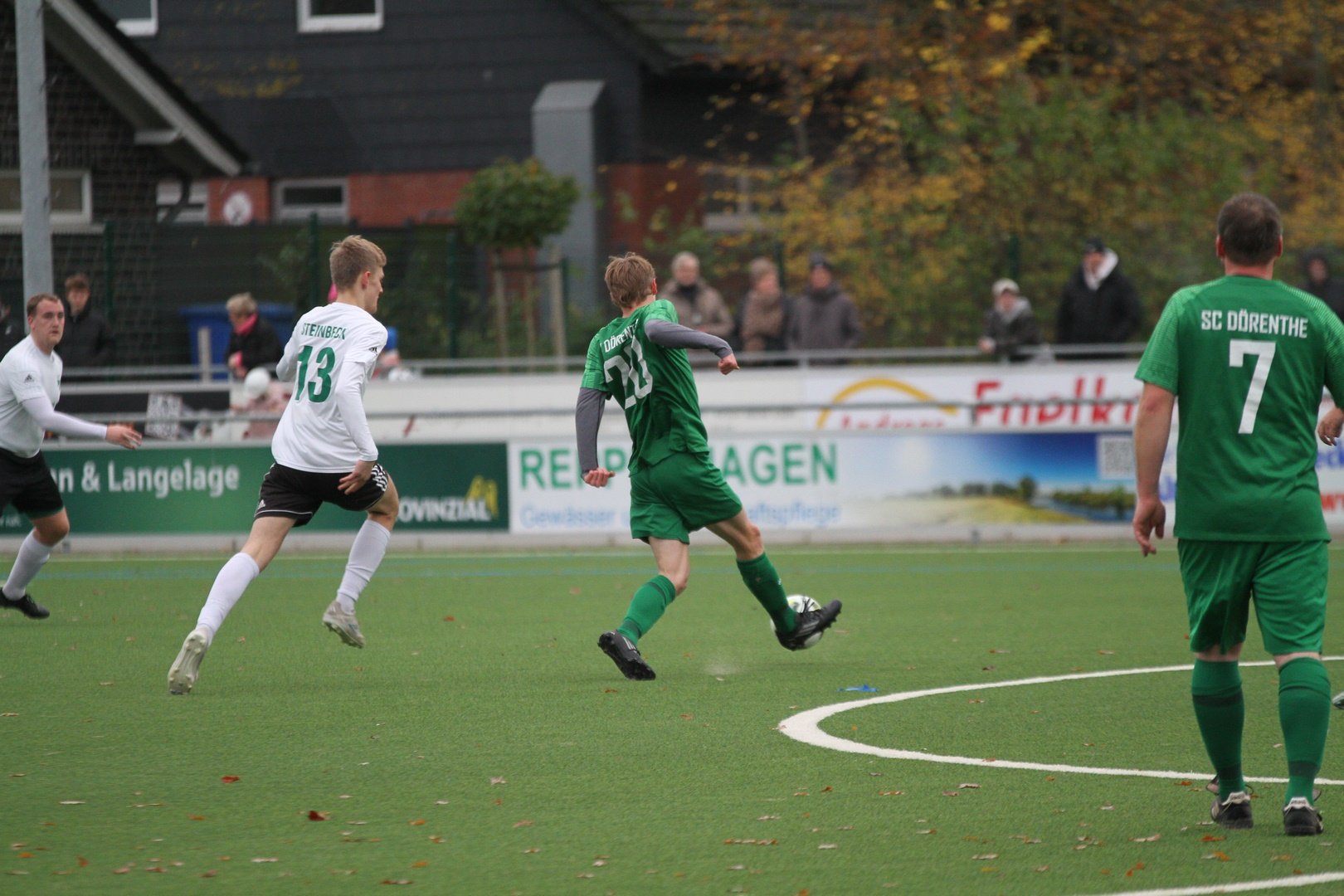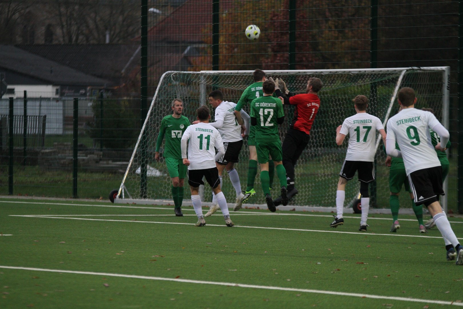 Das Ergebnis sieht erst einmal eindeutig aus. Das Spiel war aber nicht so. Bis zum 1:0 in der 11. Minute muss unsere erste bereits 2:0 führen. Auch danach ergaben sich Chancen, die ungenutzt blieben. Anders machte es der Gastgeber, der jede Chance nutzte. Und das war der größte Unterschied. Man merkte schon, dass Benedikt Bußmann und Florian Rahe in der Zentralen fehlten. Trotzdem war es spielerisch eine Partie auf Augenhöhe. Nach einem Fehlpass schaltete Steinbeck schnell um und erzielte das 2:0. Auch das 3:0 resultierte aus einem Ballverlust im Mittelfeld. Nach der Pause spielte der SC Dörenthe offensiver und kam sofort wieder zu großen Chancen, traf aber unter anderem nur den Pfosten. Anders der Tabellenführer, der mit langen Bällen seine schnellen Stürmer bediente und damit erfolgreich war. Nach 2 Kontern stand es 5:0. Es waren immer wieder Kleinigkeiten, die entschieden. Das 6:0 des Gastgebers war dann ein Kopfballtreffer nach einem Eckstoß. Steffen Klaas verkürzte nach einem Foulspiel an Georg Michel im Strafraum. Auch den zweiten Treffer zum 7:2 Endstand erzielte Steffen Klaas per Freistoß aus 17 Metern. Das ergebnis ist absolut zu hoch. 4:2 oder 7:5 wäre dem Spiel gerecht gewesen. Aber der Sieg für Steinbeck geht ohne Frage in Ordnung.