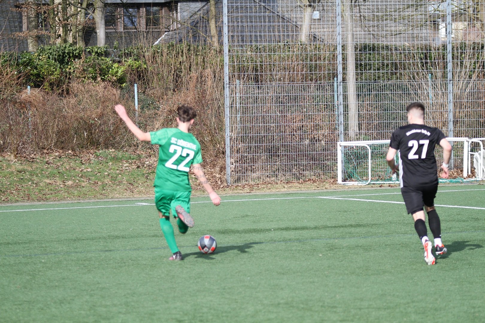 Eine bittere Niederlage musste unsere Erste am Sonntag bei der ISV hinnehmen. Es war ein sehr gut anzuschauendes Fußballspiel, in den beide Mannschaften spielerische Mittel nutzten und kaum lange Bälle schlugen. Der DSC zeigte hierbei bessere Anlagen und ließ den Gastgeber nicht zu Torchancen kommen. Im Gegenzug ergaben sich gute Gelegenheiten den Führungstreffer zu erzielen. Verschieben und Pressing klappten sehr gut und ISV 3 wurde zu Fehlern gezwungen. In der 38. Minute nutzte Ole Biekötter der ein starkes Spiel zeigte, einen Fehler und ging allein auf den Keeper zu. Trocken legte er die Kugel zur Führung in die Maschen. Zu diesem Zeitpunkt hochverdient. Auch in der Folge hätte das 0:2 fallen können. Eine eigentlich nicht so gefährliche Situation 20 Meter vor dem Tor sorgte dann für eine rote Karte gegen den DSC. Zwei Dörenther Spieler behinderten sich gegenseitig und ein ISV Spieler mischte mit. Dieser kam dann zu fall und der Schiedsrichter entschied auf Notbremse. Auch in Unterzahl ab der 41. Minute war zunächst der SC Dörenthe die spielerisch bessere Mannschaft. Aber es fehlte oft offensiv eine Anspielstation. Aus dem Spiel heraus ließ der DSC nichts zu. Ein Freistoß auf Höhe der Eckfahne sorgte dann für den Ausgleich. 3 Spieler stiegen hoch und plötzlich lag der Ball im Tor. Bis zur 75. Minute war kein Unterschied auf dem Feld zu sehen. Der SC Dörenthe hatte 2 gute Chancen erneut die Führung zu erzielen nach schnellen Angriffen. Leider blieb der Torerfolg aus. Ab der 75. Minute schwanden die Kräfte da einige Spieler unter der Woche noch krank waren. Trotzdem gelang der ISV es nicht zum Abschluss zu kommen aus dem Spiel heraus. Für das 2:1 in der 86. Minute sorgte erneut ein Standard. Nach einer Ecke zog ein ISV Akteur aus der zweiten Reihe ab und traf ins lange flache Eck. Die letzten 8 Minute versuchte der DSC noch ein Remis zu erzwingen aber kam nicht mehr zu Gelegenheiten. Die Unterzahl brachte letztlich den Unterschied.